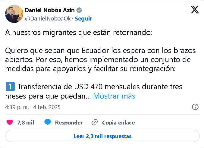 Conozca quienes son los migrantes que pueden acceder a la ayuda económica, que dispuso el presidente Daniel Noboa mediante el decreto ejecutivo 521, para atender, proteger y facilitar la reintegración social y económica de los migrantes retornados por las políticas migratorias de EE.UU.